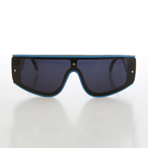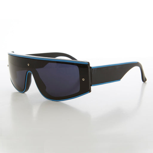 This vintage 80s sunglass features a one piece futuristic lens. Colored striped outline frame adds an attractive touch to this 80s sunnie. Back to ...