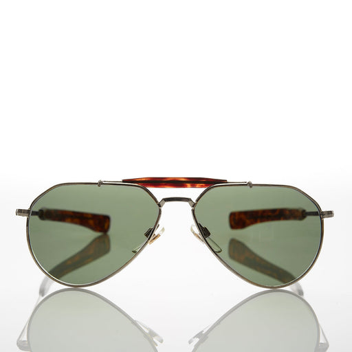 Vollständige Details anzeigenAttractively shaped vintage aviator pilot sunglass. Quality nickel silver metal frame with optical ground and polished impact resistant glass lens....
