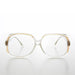 These oversized, old-fashion, granny glasses also include a bifocal, reading glass lens in a clear, plastic frame with color accents.