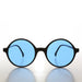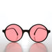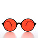 This large round perfect circle sunglass features a matte black frame with colorful tinted lens. New old stock. Never worn. Great condition. UV Protection.