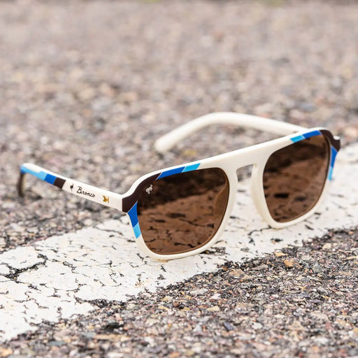 Our Dockside Fort Knocks polarized sunglasses are a perfect throwback to relaxed retro style. Warm striping on the arms with navy front frames matc...