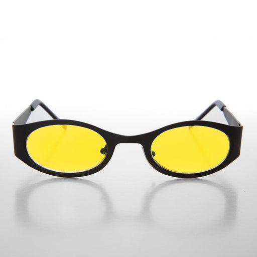 Afficher tous les détailsSmooth, matte black metal, oval lens frame sunglass that features color tinted lenses. These sunglasses are the perfect choice for this season. Lim...