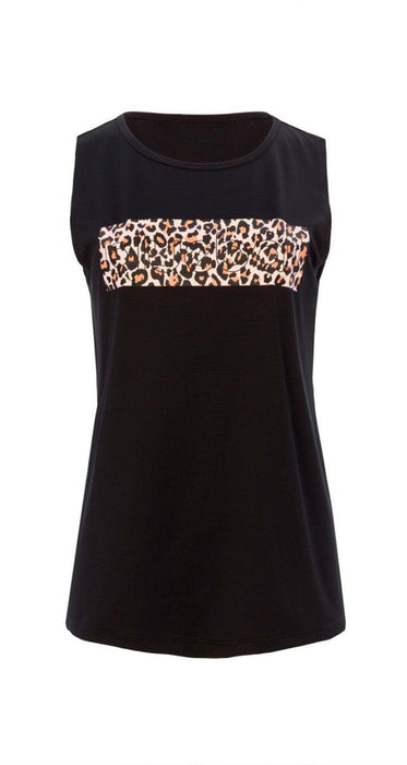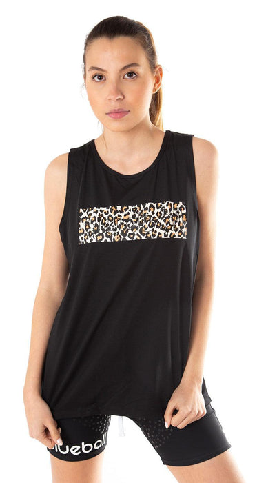 BLUEBALL Running T-Shirt Sleveless Slim Fit Women Black & Leopard Prints