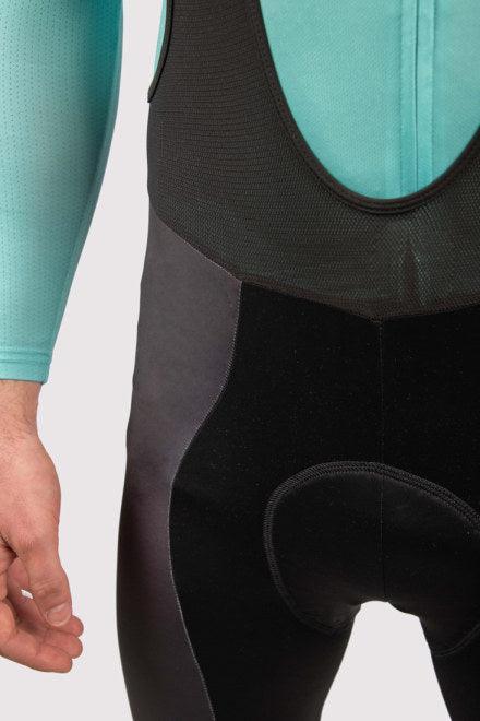• The bib section includes a high-stretch stripe textured recycled material for even stretch distribution and to accommodate all rider heights.